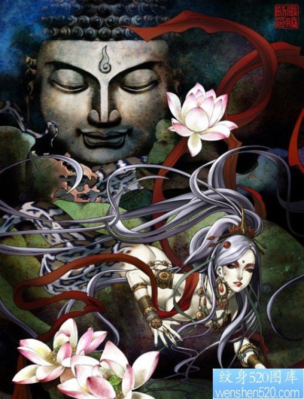 一款适合纹满背的佛纹身图案_宗教纹身图案大全_纹身图吧