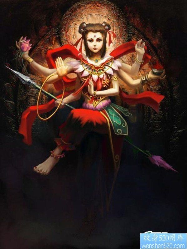 一款哪吒变身千手观音的纹身图案_宗教纹身图案大全_纹身图吧