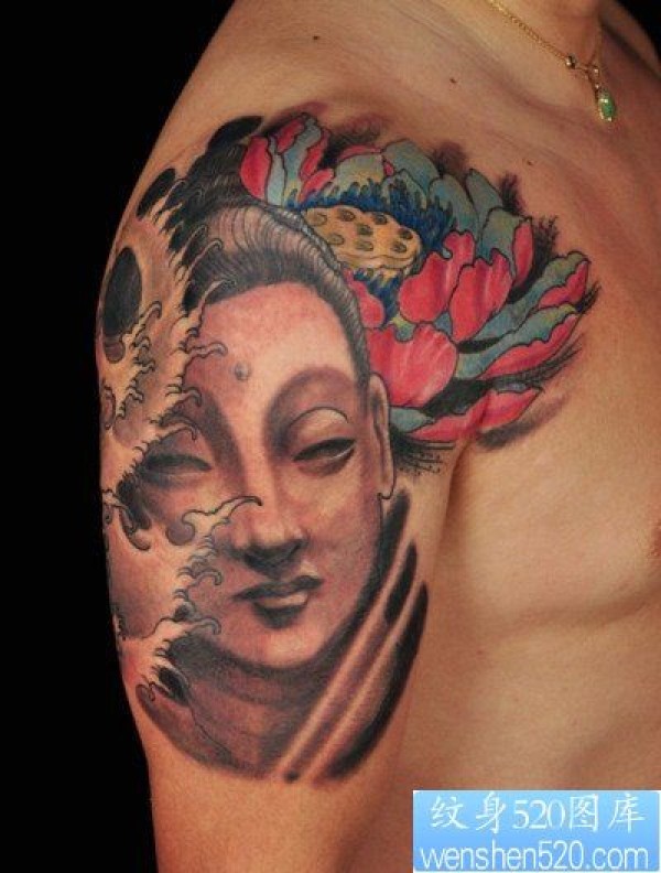 大臂彩色莲花佛纹身图案由最好的纹身图案_宗教纹身图案大全_纹身图吧