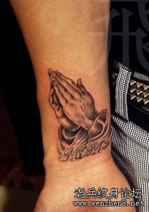手臂祈祷之手纹身图片_宗教纹身图案大全_纹身图吧