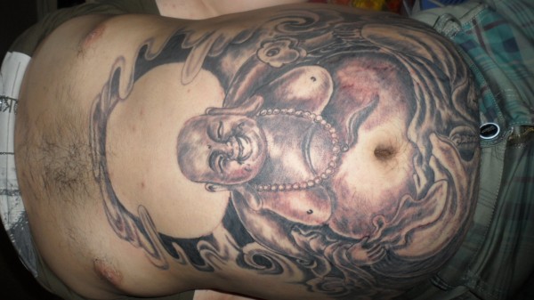 啤酒肚上的弥勒佛纹身图案很有意思的纹身图案_宗教纹身图案大全_纹身图吧
