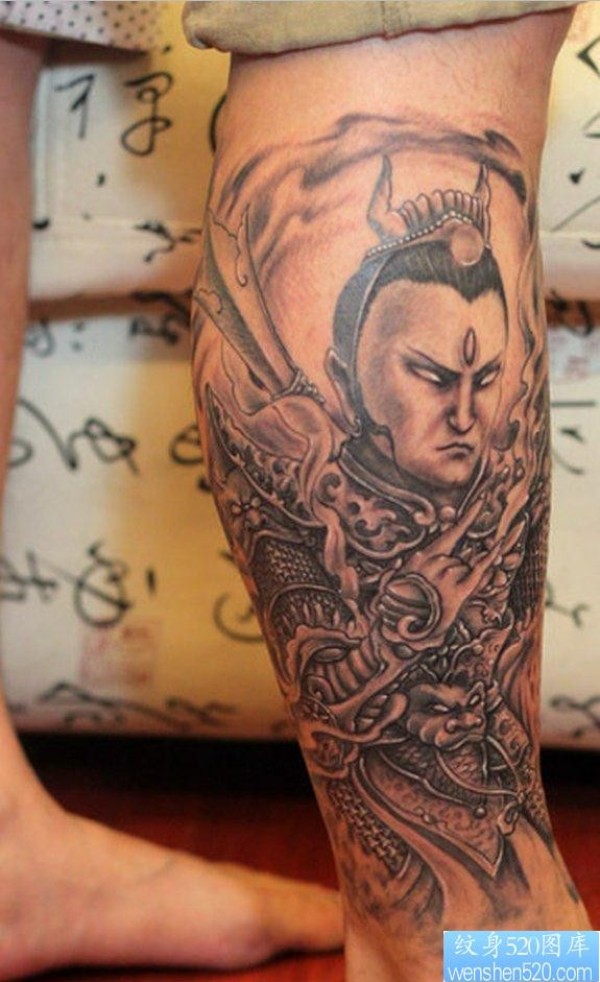 一幅小腿二郎神纹身图片_宗教纹身图案大全_纹身图吧
