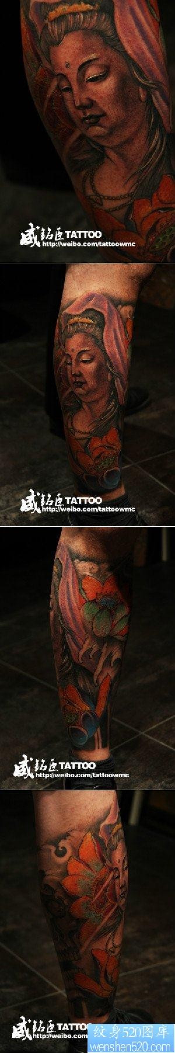 腿部前卫经典的传统观音纹身图片_宗教纹身图案大全_纹身图吧