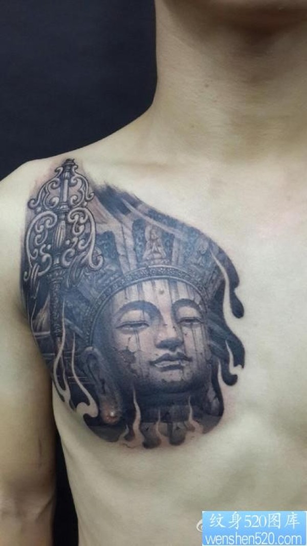男生前胸很酷经典的地藏王菩萨纹身图片_宗教纹身图案大全_纹身图吧