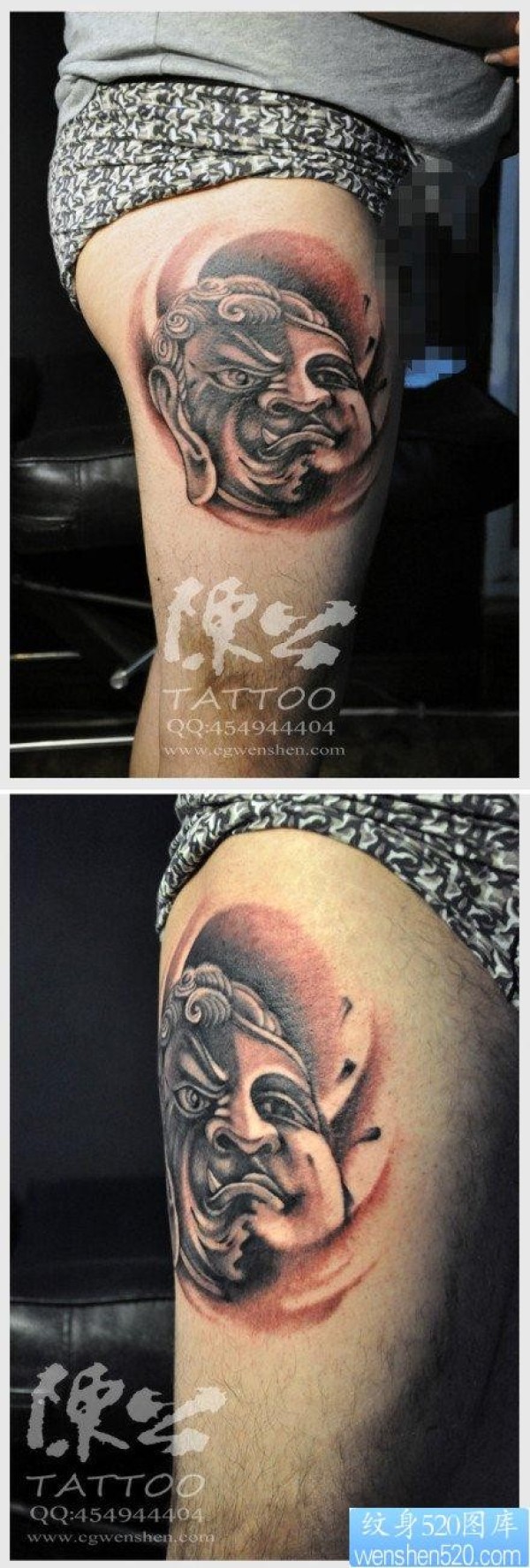 腿部观音佛头像纹身_宗教纹身图案大全_纹身图吧
