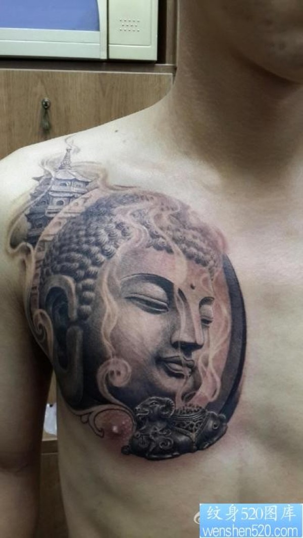 胸前流行很酷的大日如来纹身图片_宗教纹身图案大全_纹身图吧