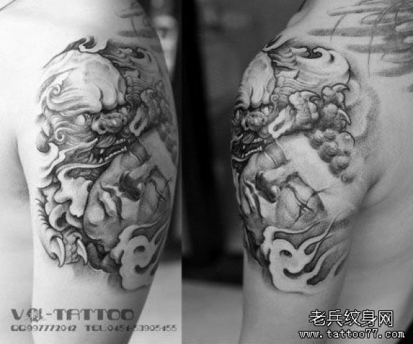 手臂经典很帅的唐狮佛头纹身图片_宗教纹身图案大全_纹身图吧
