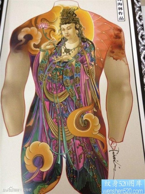 满背观音纹身手稿_宗教纹身图案大全_纹身图吧