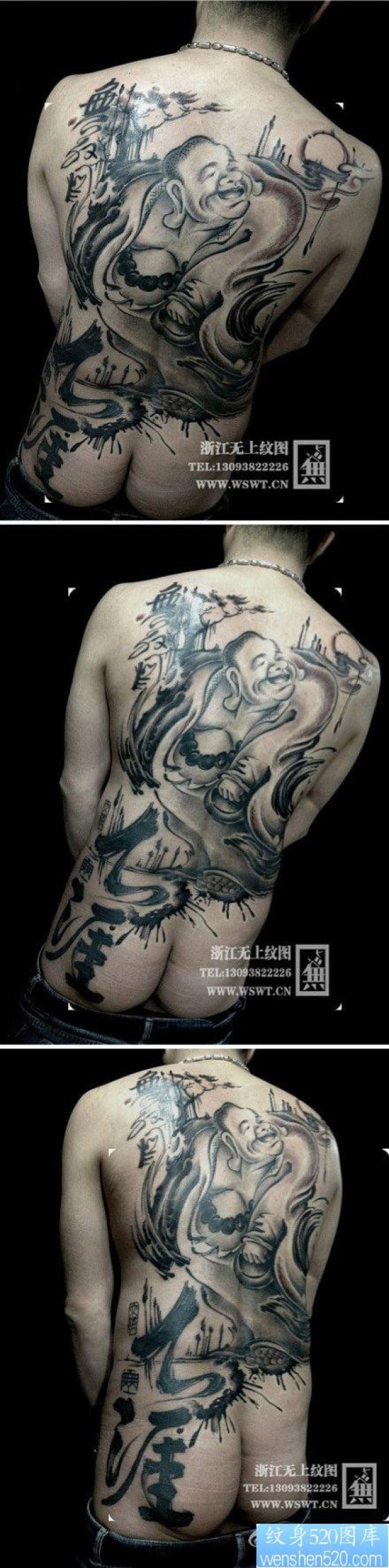男生背部经典的满背弥勒佛纹身图片_宗教纹身图案大全_纹身图吧