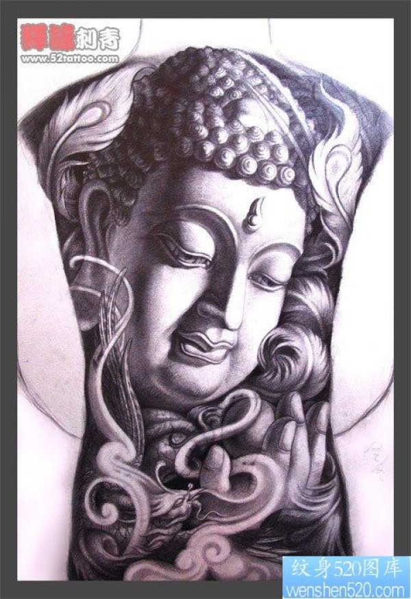 经典很酷的满背佛头纹身手稿_宗教纹身图案大全_纹身图吧
