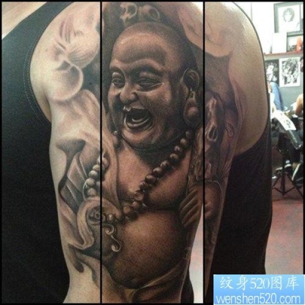手臂经典帅气的弥勒佛纹身图片_宗教纹身图案大全_纹身图吧