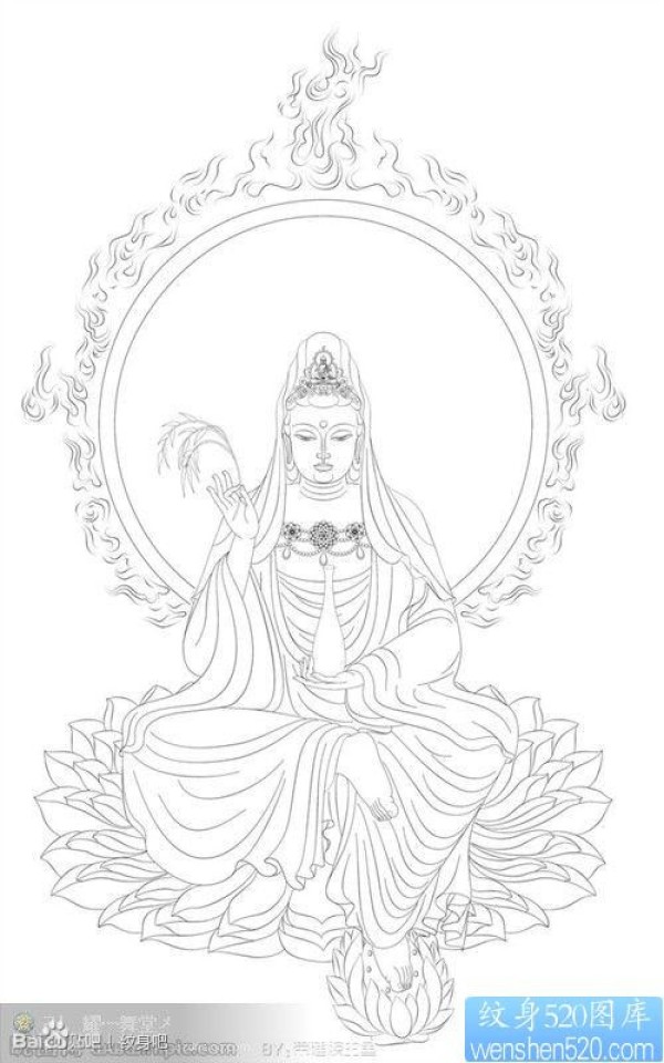 观音线稿纹身图片_宗教纹身图案大全_纹身图吧