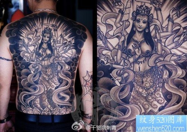男生后背经典的满背千手观音纹身图片_宗教纹身图案大全_纹身图吧