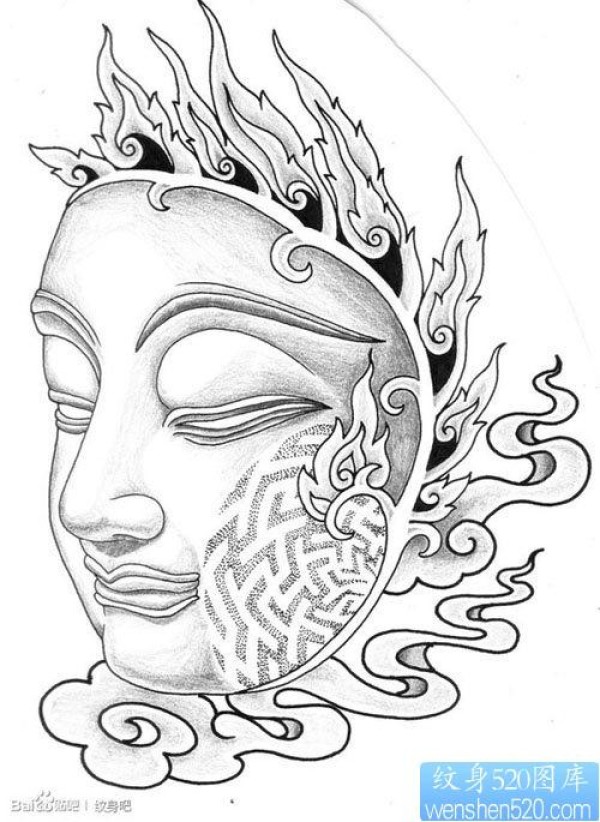 经典的佛头面具纹身图片_宗教纹身图案大全_纹身图吧