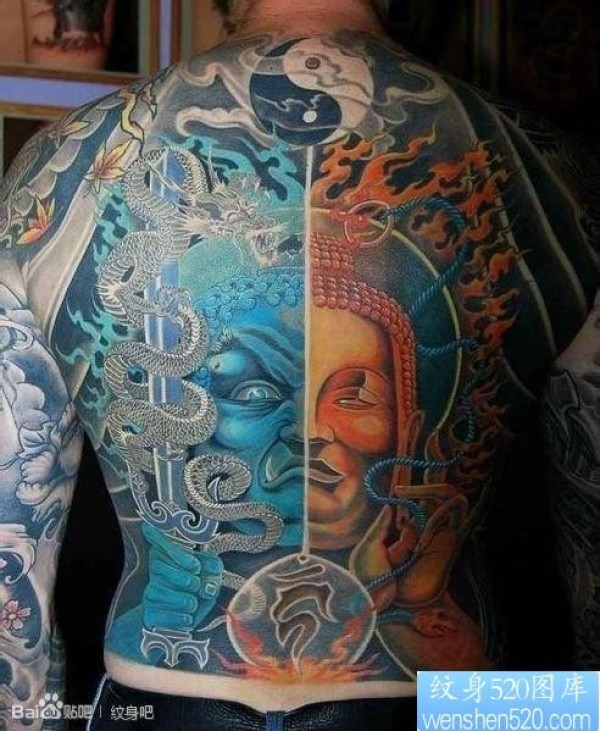 男生后背很酷的满背一半不动明王一半佛头纹身_宗教纹身图案大全_纹身图吧