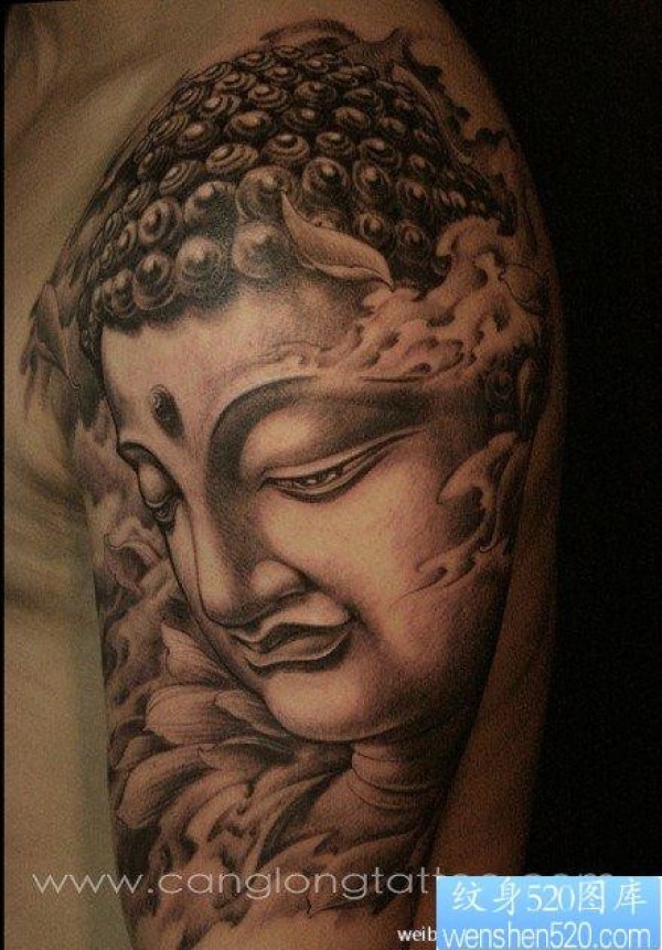 黑白佛头纹身图片_宗教纹身图案大全_纹身图吧
