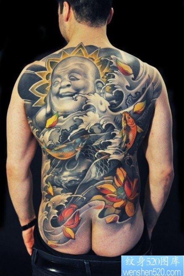 经典帅气的满背弥勒佛纹身图片_宗教纹身图案大全_纹身图吧