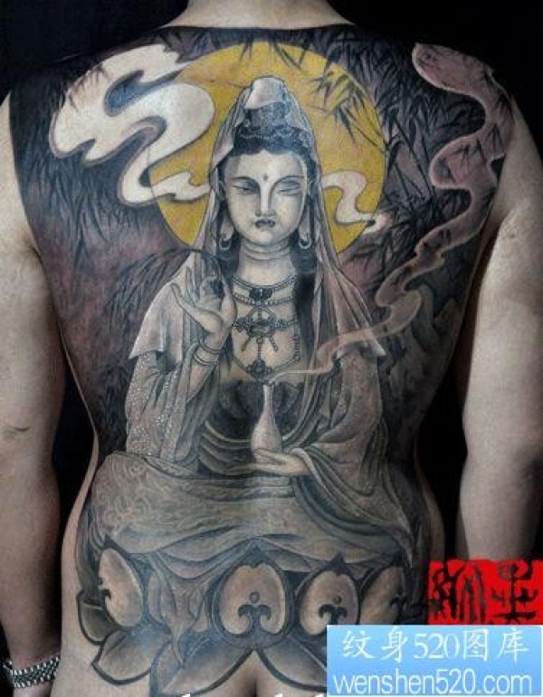 满背杨柳观音纹身图片_宗教纹身图案大全_纹身图吧