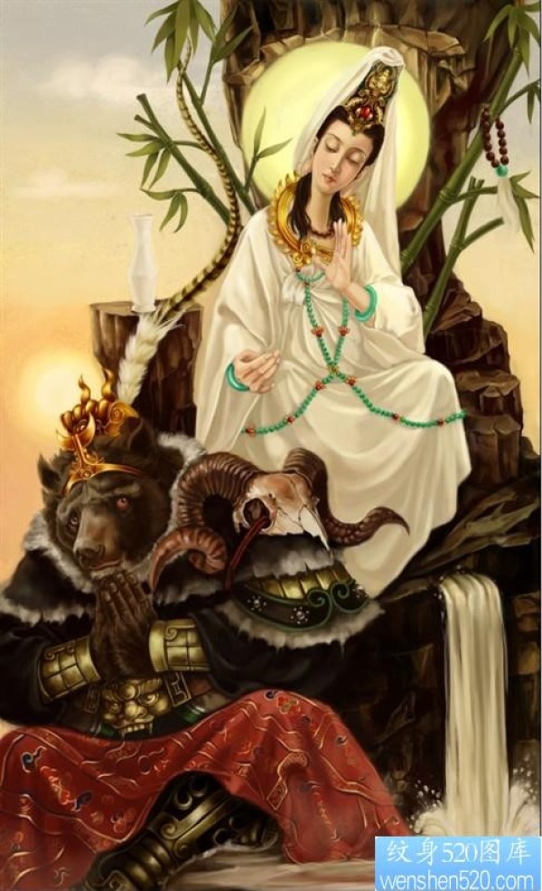 经典南海观音纹身图片_宗教纹身图案大全_纹身图吧