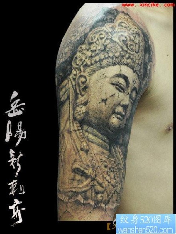 手臂经典的石雕大势至菩萨纹身图片_宗教纹身图案大全_纹身图吧