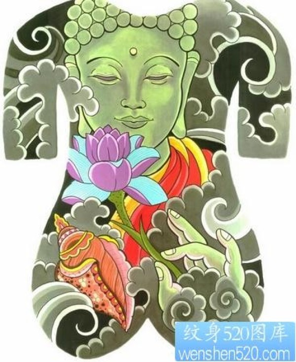 满背佛纹身图片满背彩色佛莲花纹身图案_宗教纹身图案大全_纹身图吧