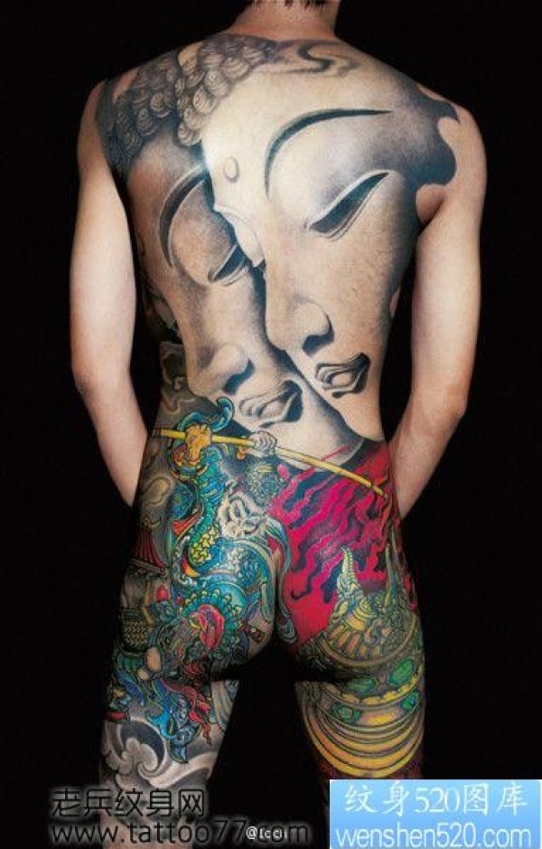 霸气的满背佛头孙悟空纹身图片_宗教纹身图案大全_纹身图吧