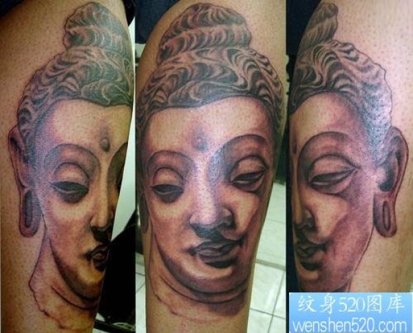 腿部观音佛头像纹身_宗教纹身图案大全_纹身图吧