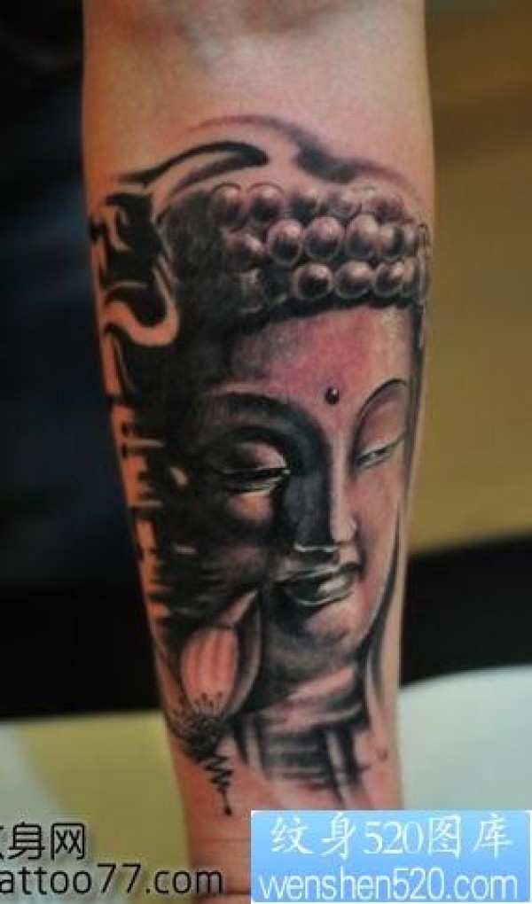 经典的手臂观音佛头纹身图片_宗教纹身图案大全_纹身图吧