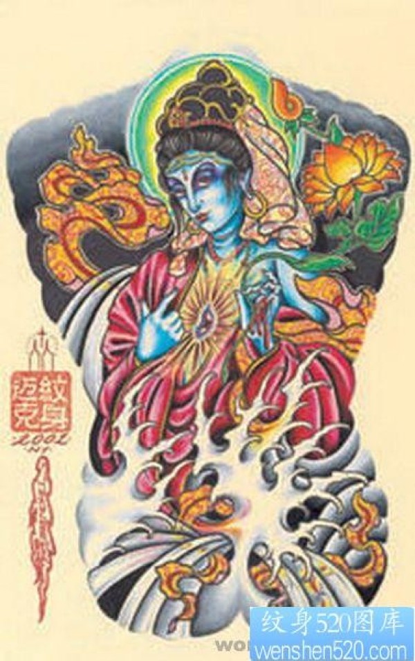 满背观音纹身图片图案_宗教纹身图案大全_纹身图吧