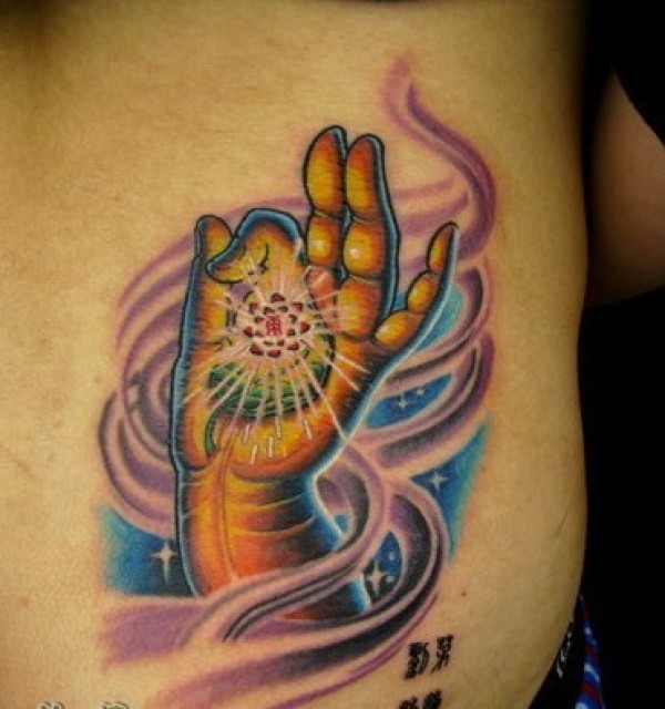 胸前的祥云的佛手图案_宗教纹身图案大全_纹身图吧