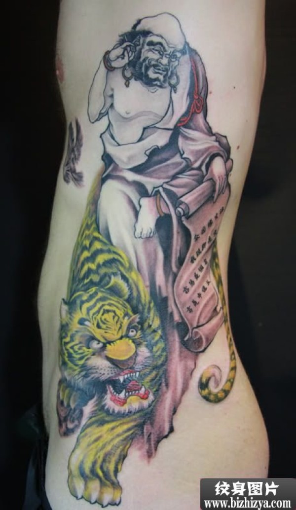 腰部中国纹身伏虎罗汉图案图片_宗教纹身图案大全_纹身图吧