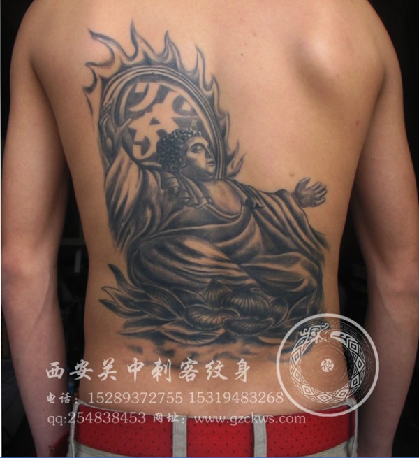 半背佛纹身黑灰素描西安关中刺客纹身_宗教纹身图案大全_纹身图吧