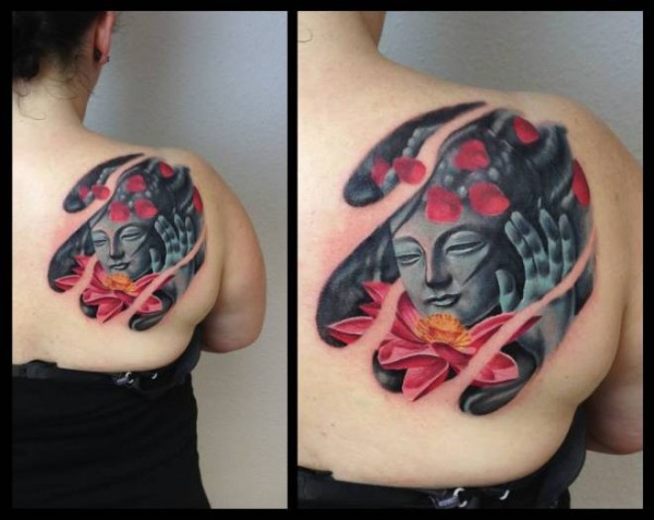 美女肩胛骨一款时尚唯美的佛纹身图案_宗教纹身图案大全_纹身图吧