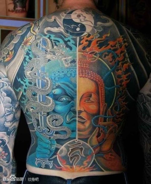 男人后背超帅是满背不动明王与佛头纹身图案_宗教纹身图案大全_纹身图吧