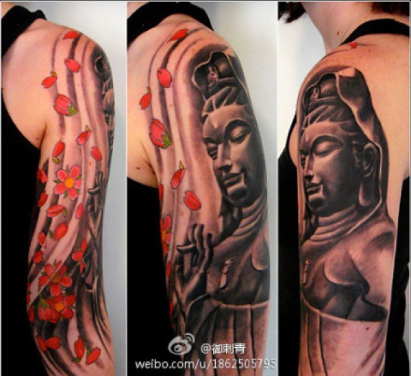 男人手臂一款石雕观音纹身图案_宗教纹身图案大全_纹身图吧