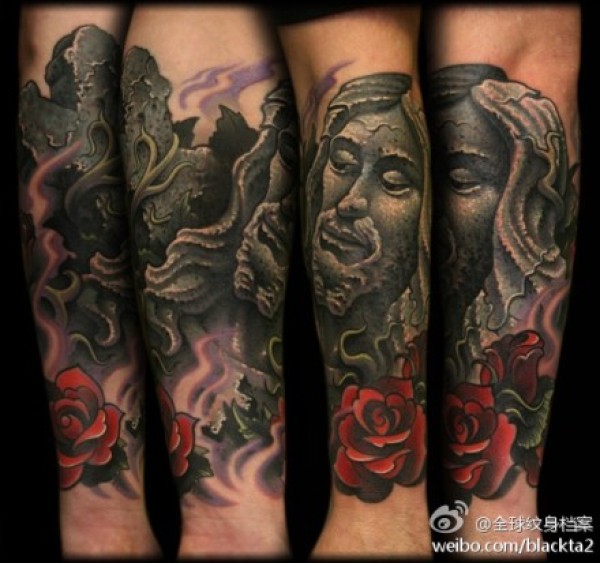 手臂时尚很酷的石雕耶稣纹身图案_宗教纹身图案大全_纹身图吧