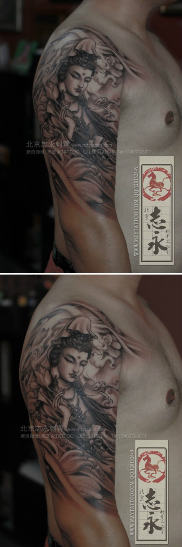 男人手臂经典时尚的观音菩萨纹身图案_宗教纹身图案大全_纹身图吧