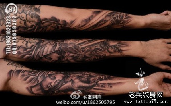 手臂经典潮流的圣母玛利亚纹身图案_宗教纹身图案大全_纹身图吧