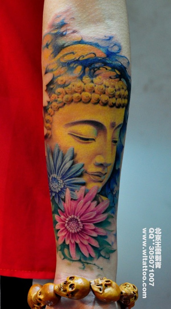 为你推荐一款漂亮的彩色手臂佛纹身图案作品分_宗教纹身图案大全_纹身图吧
