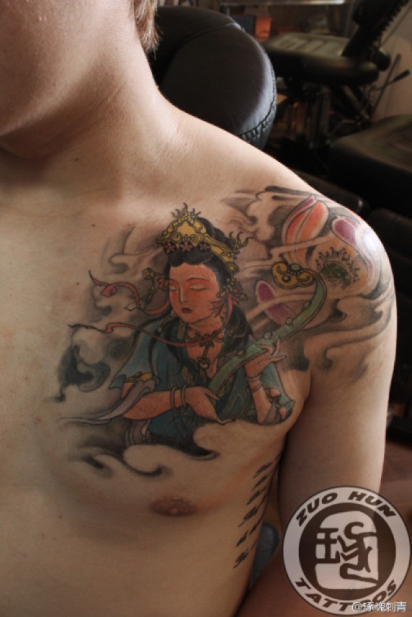 胸前经典潮流的普贤菩萨纹身图案_宗教纹身图案大全_纹身图吧