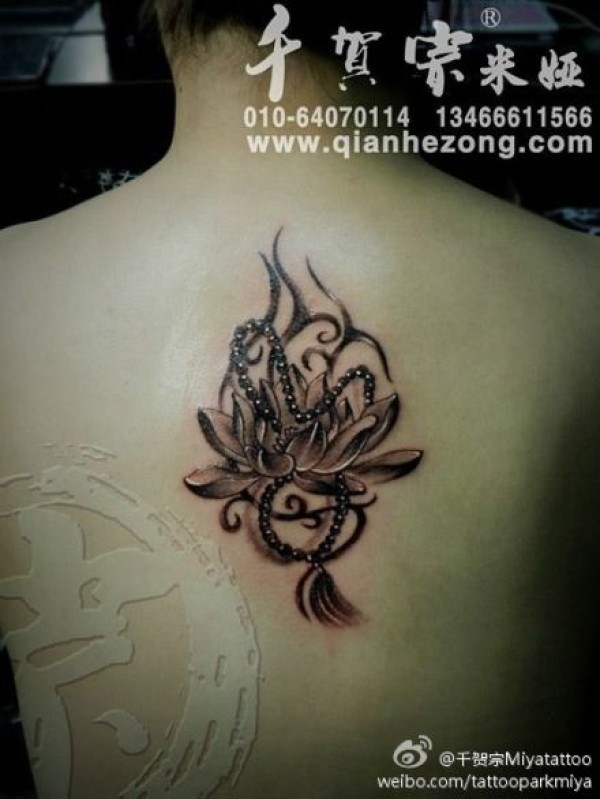 男生后背唯美潮流的莲花佛珠纹身图案_宗教纹身图案大全_纹身图吧