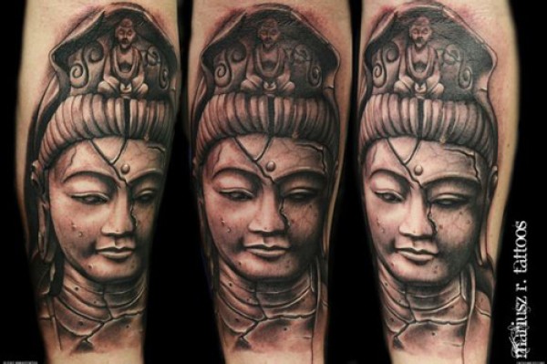 一款时尚经典的石雕观音纹身图案_宗教纹身图案大全_纹身图吧