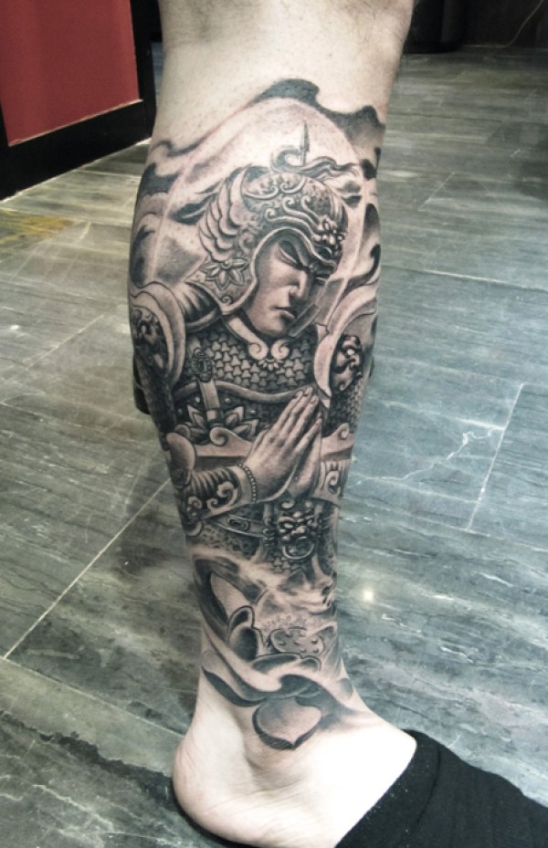 腿部帅气经典的韦驮菩萨纹身图案_宗教纹身图案大全_纹身图吧