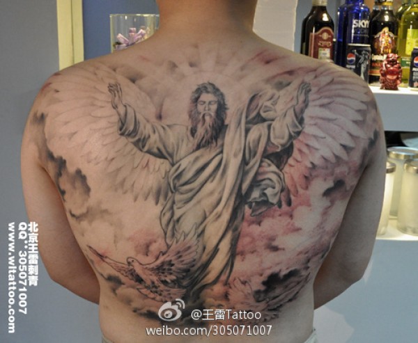 男人后背经典的耶稣纹身图案_宗教纹身图案大全_纹身图吧