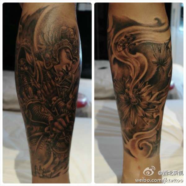 腿部经典的韦驮菩萨纹身图案_宗教纹身图案大全_纹身图吧