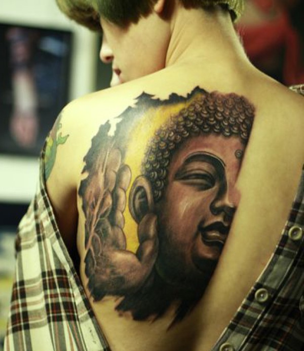 美女背部半背佛头纹身图案_宗教纹身图案大全_纹身图吧