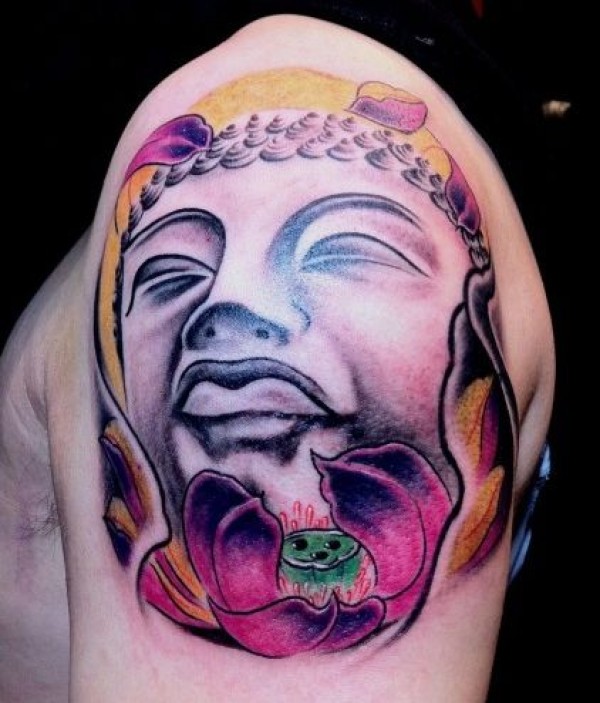 手臂一款经典的佛头莲花纹身图案_宗教纹身图案大全_纹身图吧