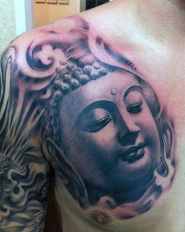 胸部一款帅气经典的佛头纹身图案_宗教纹身图案大全_纹身图吧