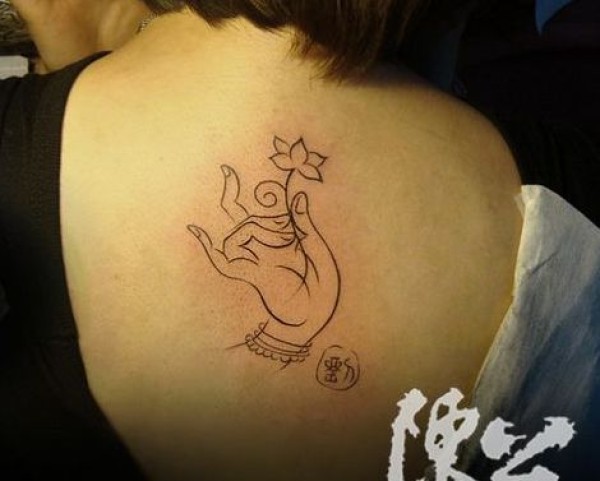 女孩子背部佛手莲花纹身图案_宗教纹身图案大全_纹身图吧