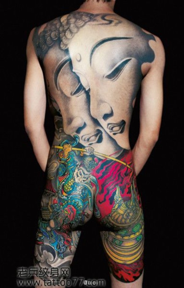 超酷的满背佛头与孙悟空纹身图案_宗教纹身图案大全_纹身图吧